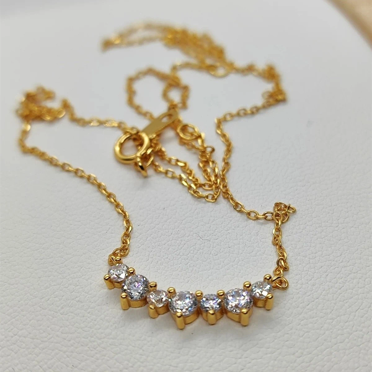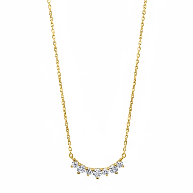 שרשרת כסף אמיתי בציפוי זהב 18K משובצים זירקון ברמת גימור הכי יוקרתית 5A בצורת חצי קשת מרהיבה