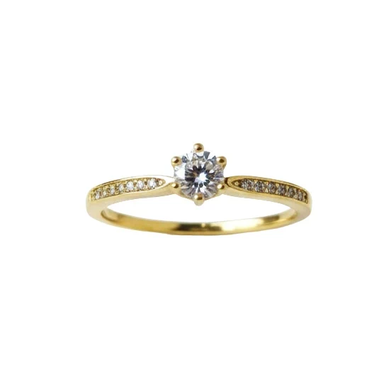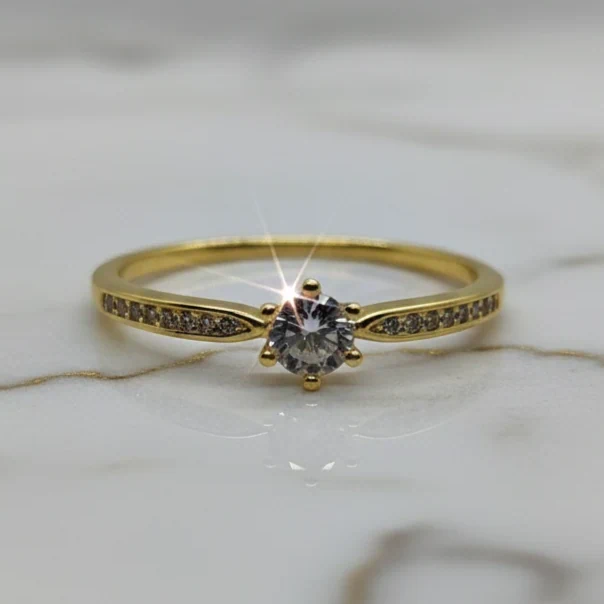 טבעת כסף סטרלינג בציפוי זהב 14K בשיבוץ זירקון ברמת טריפל A עדין ובנוסף משובצת לכל אורכה
