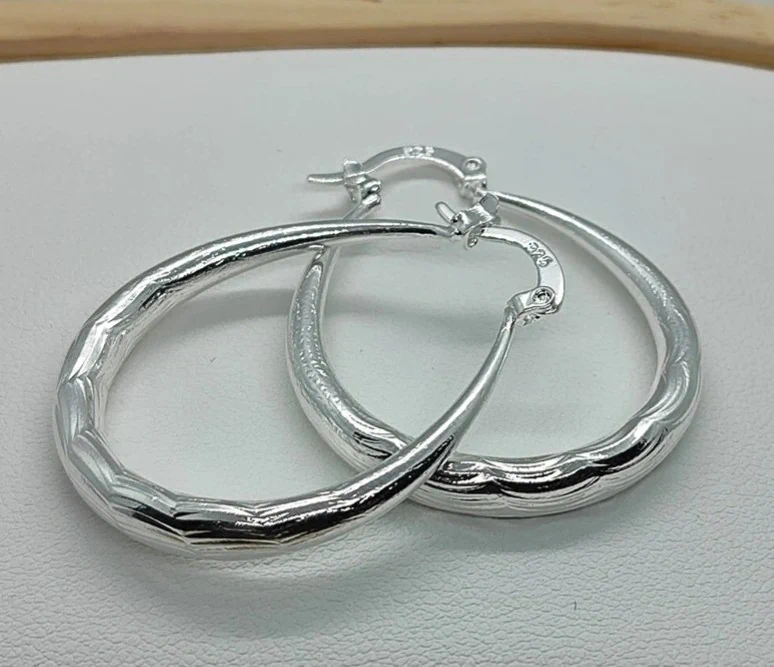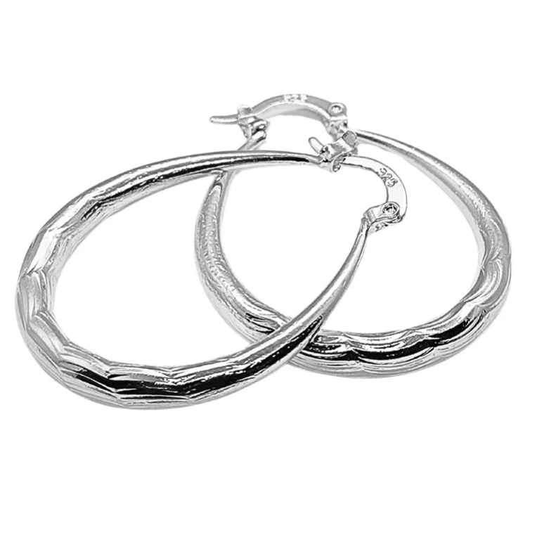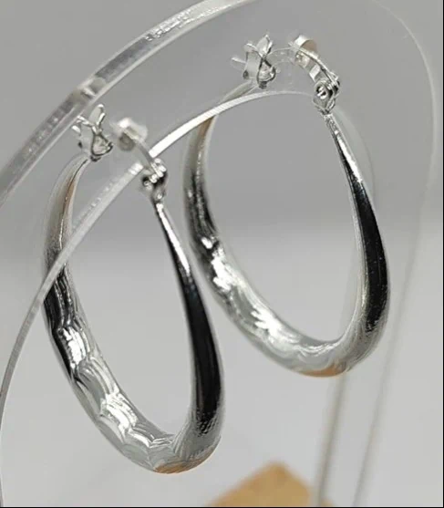 עגילי טיפה עם חריטה stainless steel (פלדת אל חלד) בציפוי 925 סטרלינג