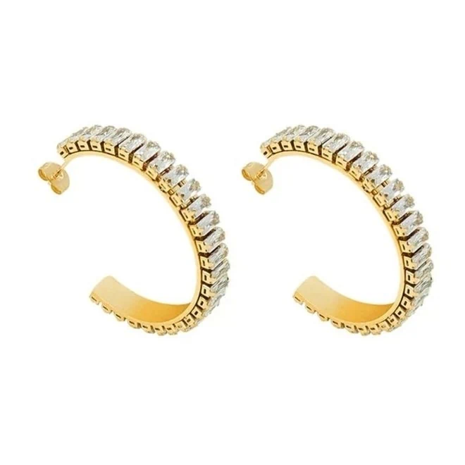 עגילים מושלמים המשובצים בזירקונים ללוק מהפנט וזוהר במיוחד עם ציפוי זהב 18 קראט איכותי.