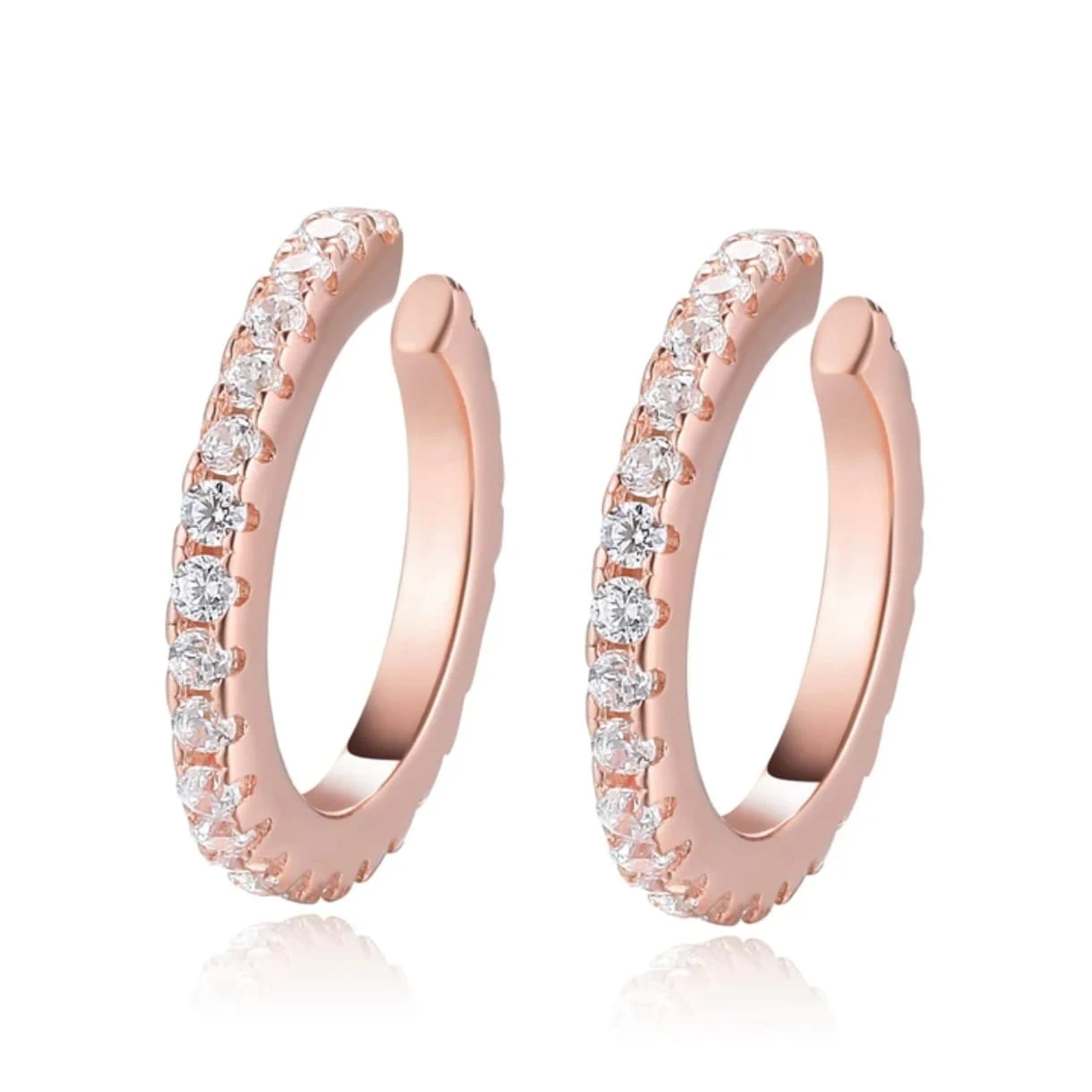 עגיל קליפ המעוטר באבני זירקוניה עשוי מכסף סטרלינג 925 וציפוי זהב רוז איכותי.
