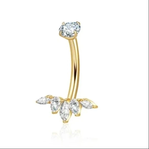 עגיל פירסינג לטבור מושלם בעל עיצוב מרהיב של עלים בשיבוץ זירקונים למראה זוהר במיוחד.