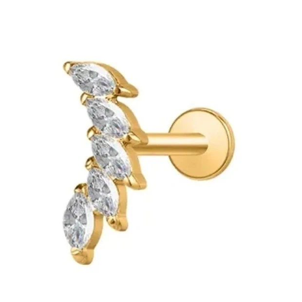 עגיל פירסינג מושלם בעל עיצוב מרהיב של עלים בשיבוץ זירקונים למראה זוהר במיוחד.